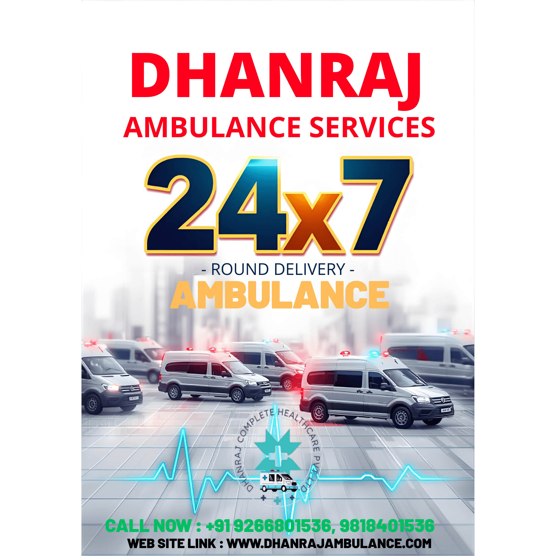 DHANRAJ Ambulance Services โ 24/7 Emergency, Home & Hospital Ambulance Services in India.